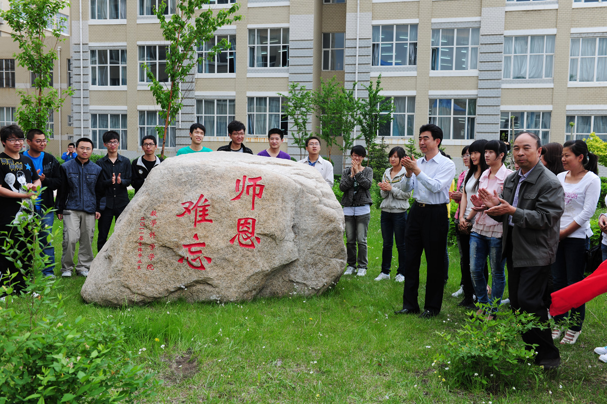 蚕丝吐尽,烛泪成灰秋更稠,春播桃李,秋来硕果满神州。为感念师恩,祝福母校明天更美好,数学科学学院2011届全体毕业生为母校捐赠了校园景观石,并于6月3日在铁人讲堂前举行捐赠仪式。副校长刘恒,数学科学学院党政领导及2011届部分毕业生代表参加了捐赠仪式。