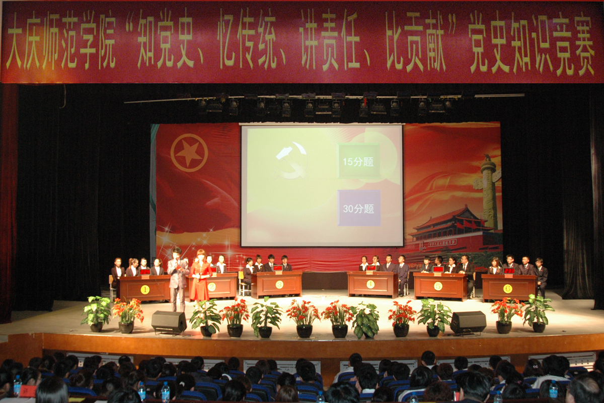 5月23日,由校党委组织部主办的365英国上市官网“知党史、忆传统、讲责任、比贡献”党史知识竞赛在校大学生活动中心举行。校纪委书记、工会主席陈少清,党委组织部、宣传部、学生工作部及各院系领导学生观看了比赛。艺术学院、经济管理学院、生命科学学院、数学科学学院、计算机科学与信息技术学院、化学化工学院等六支代表队参加本次角逐。