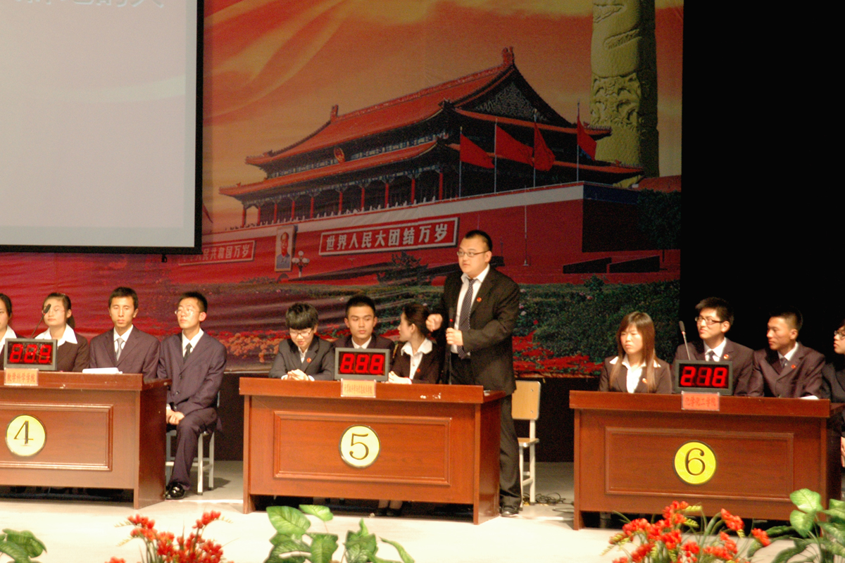 这次党史知识竞赛既有“必答题”、 “抢答题”、 “风险题”、 “论述题”等常规题型,也有符合大学生思维特点的“团队展示”、“亲友团答题”和“现场互动”诸环节,学生在紧张的知识竞答之余,用歌唱、舞蹈、小品、朗诵等表演形式更大范围的诠释了对党的历史和宗旨的理解。