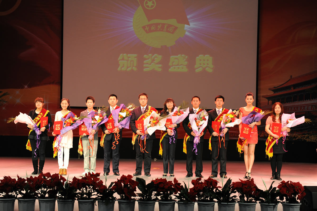 颁奖典礼上,与会领导分别为刘海燕等“十佳”青年颁奖。