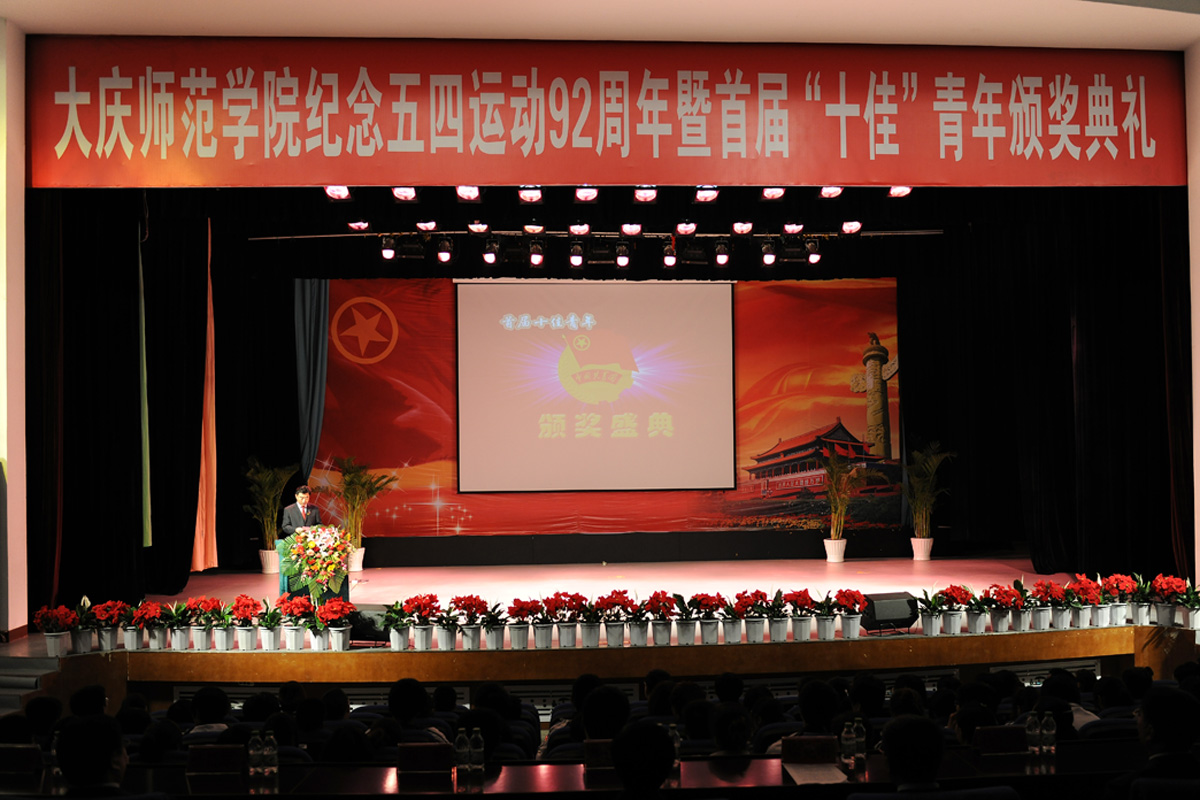 今天,为弘扬“五四”精神,进一步团结和凝练学校青年的力量,充分发挥了生力军和突击队作用,我校在大学生活动中心举行纪念五四运动92周年暨首届“十佳”青年颁奖典礼。学校副总师以上领导以及机关各部门、各院系领导出席了此次颁奖典礼,典礼由刘恒副院长主持。