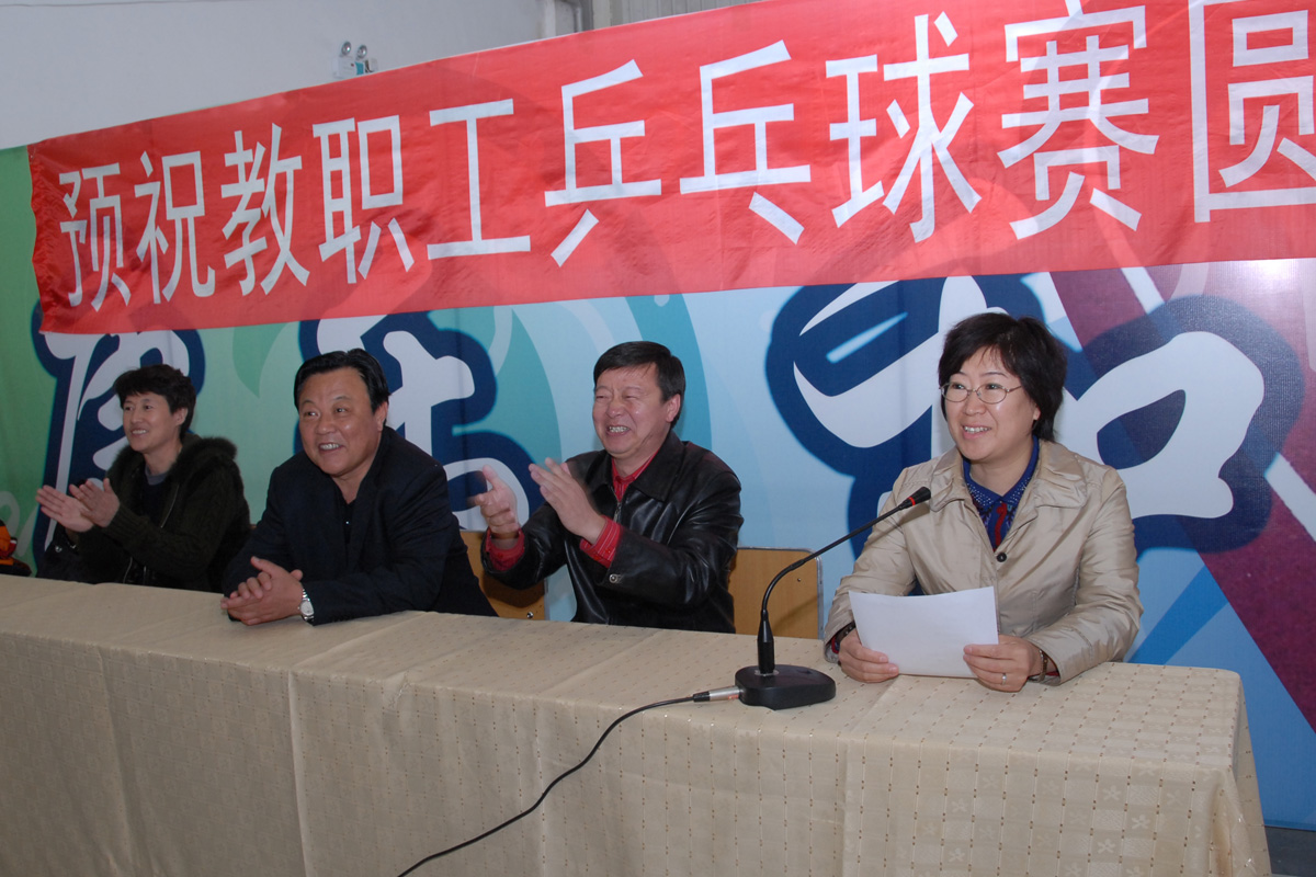 2011年教职工乒乓球比赛经过一周的激烈角逐,于4月26日下午闭幕。校纪委书记、工会主席陈少清出席闭幕式并致闭幕词,他希望各代表队弘扬团结协作,努力拼搏,勇争第一的精神,立足岗位,为学校的发展多做贡献。副裁判长孙咏梅宣读了混合团体、男女混合双打、男子单打、女子单打比赛成绩。