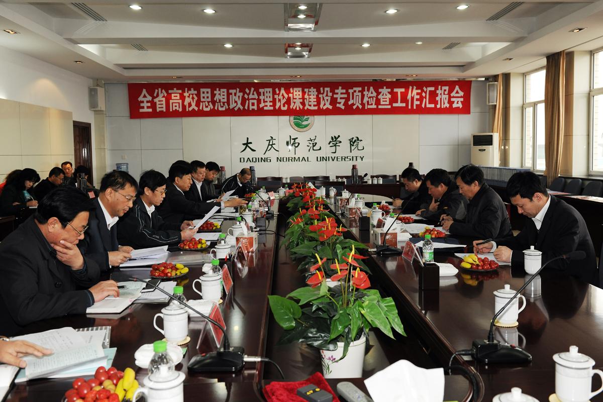 会议由校党委副书记贾文涛主持,他对检查组的到来表示热烈欢迎,并就我校的思想政治理论课建设工作进行了汇报。他说,加强和改进大学生思想政治教育是一项重大而紧迫的战略任务,中央16号文件和中宣部、教育部5号文件下发以后,我校党委高度重视,采取切实措施,迅速贯彻落实,适应新形势、新任务要求,进一步加强思想政治理论课建设工作,努力打造一支政治坚定、业务精湛、师德高尚、结构合理的教师队伍,努力探索加强大学生思想政治教育的新途径和新方法,充分发挥思想政治理论课作为大学生思想政治教育主渠道的作用,进一步推动中国特色社会主义理论体系进教材、进课堂、进学生头脑工作,不断提高大学生的思想政治素质,促进学生的全面发展,传承和弘扬大庆精神铁人精神,培养和造就大批“铁人”式的社会主义建设者和接班人。