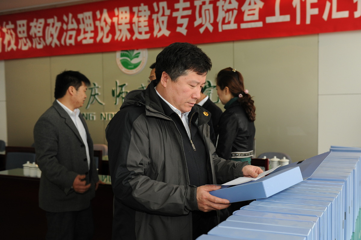 汇报会结束后,检查组对思想政治理论课建设的文件资料进行了细致的检查。在校领导陪同下,检查组深入课堂,对正在讲授的《马克思主义基本原理概论》等课程进行了观摩指导。听课结束后,检查组走访了我校思想政治理论课教育部,考察了大庆精神研究中心、陈独秀研究所、资料室、教研室等教学场所。专家组对思想政治理论课教育部的科学研究、办公条件建设等工作给予肯定,对检查中发现的问题提出了意见。