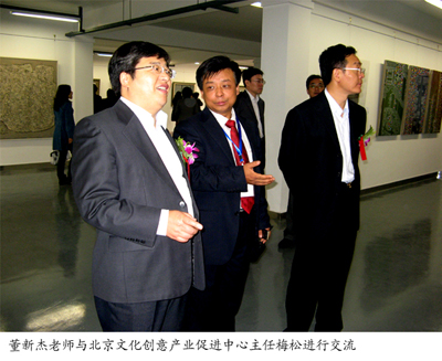 另讯:在10月10日举行的“2010首届十三陵国际艺术家提名展”中,董新杰老师受邀参加,其作品与徐冰、罗中立、张晓刚、岳敏君、方力钧、曾梵志、周春芽、杨少斌、刘小东、刘炜、韦尔申、李象群、锺涵、戴士和、朱伟等知名艺术家作品一同展出并受到业界关注。
