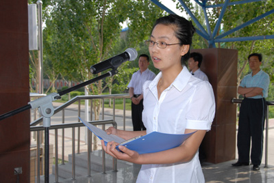 仪式上,法律系刘明宇同学和文学院楚丽丽老师分别代表毕业生和辅导员发言。刘明宇同学表示要坚定信念,执着追求,继续践行大庆精神铁人精神,努力拼搏,争做“铁人式”的建设者和接班人。楚丽丽希望同学们牢记学校领导和老师的谆谆教诲,把握好自己的人生道路,走好平凡的每一步,成就不平凡的人生。徐克明院长在仪式上作了语重心长、情真意切的讲话。他说,这是我们学院2010届毕业生最后一次以庆师学子的名义参加升旗仪式,我希望你们意气风发,信心百倍,踏踏实实的走出师范学院的大门,希望你们在走出校门之后,勇敢地接受挑战,以自己的品格和精神融入社会,用自己的聪明才智奉献社会,我相信你们不论身处何时何地,一定会饮水思源,心系母校,愿你们成为社会的中坚,师范学院的骄傲。