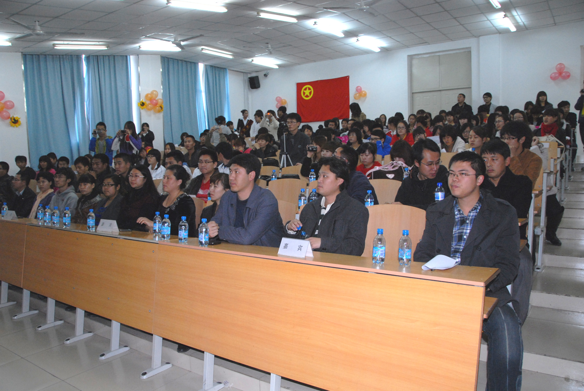 10月19日下午,我校在主楼1-1举行了以"高举红旗跟党走"为主题党(团)史知识竞赛。各院系学生党支部书记、辅导员及学生代表200余人观看了比赛。来自生命科学学院,数学科学学院,化学化工学院,经济管理学院,计算机科学与信息技术学院,教育科学学院,文学院,艺术学院音乐系等九支代表同场竞技,一展风采。