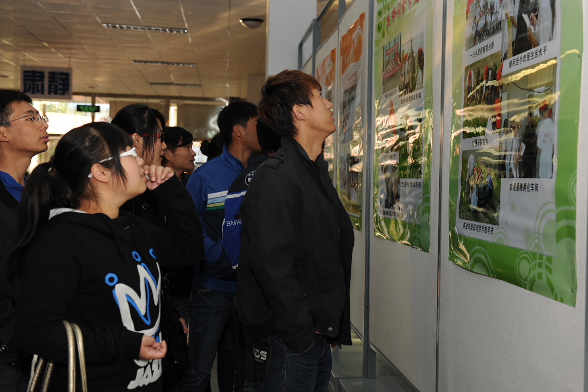 最后,与会领导和同学们一同参观了暑期社会实践图片展。