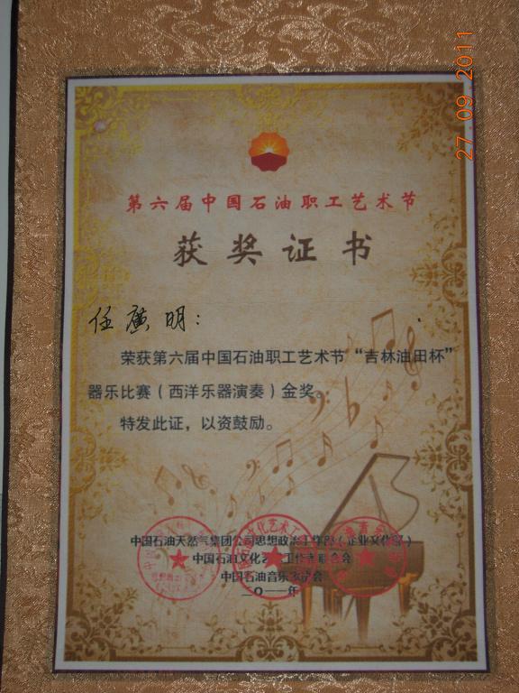 本次比赛于9月19日正式启动,来自中石油、中石化、中海油等30多个单位的160多名选手参赛。经过激烈角逐,我校教师以精湛的表演技巧和丰富的艺术表现力取得两金一铜的好成绩,其中任广明老师获得西洋器乐组金奖,张英莉老师获得美声唱法组金奖,武静老师获得美声唱法组铜奖,为大庆油田和学校争得了荣誉。