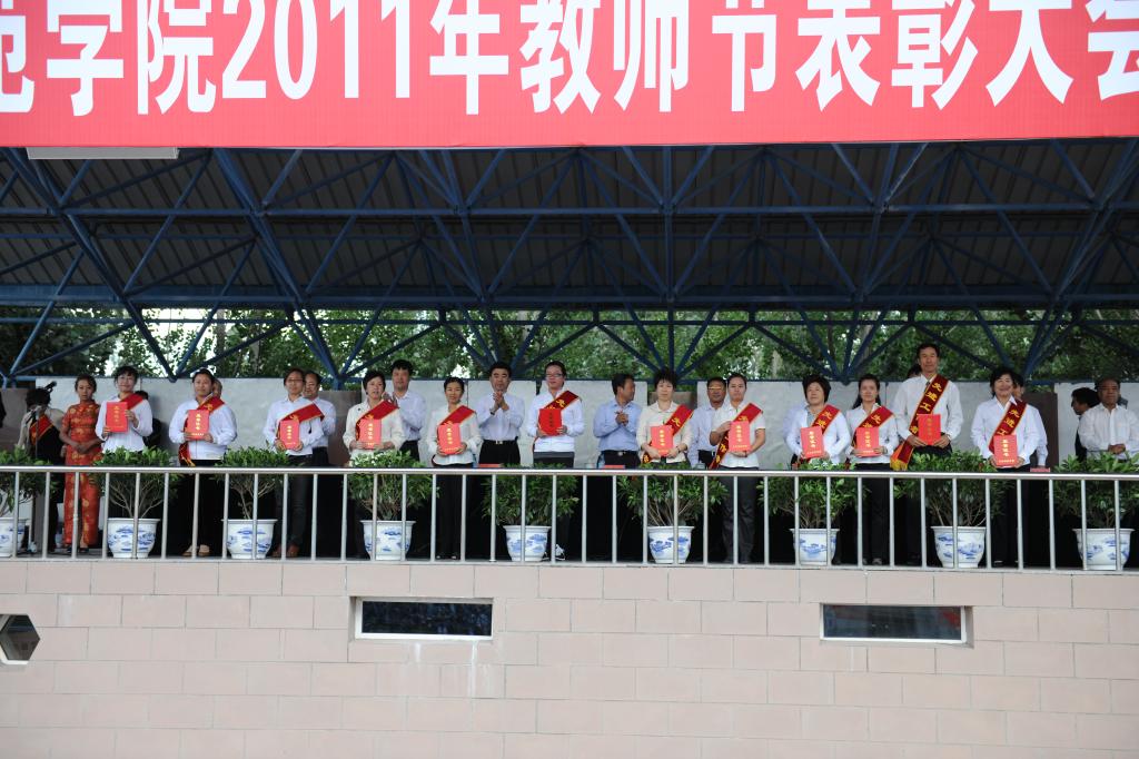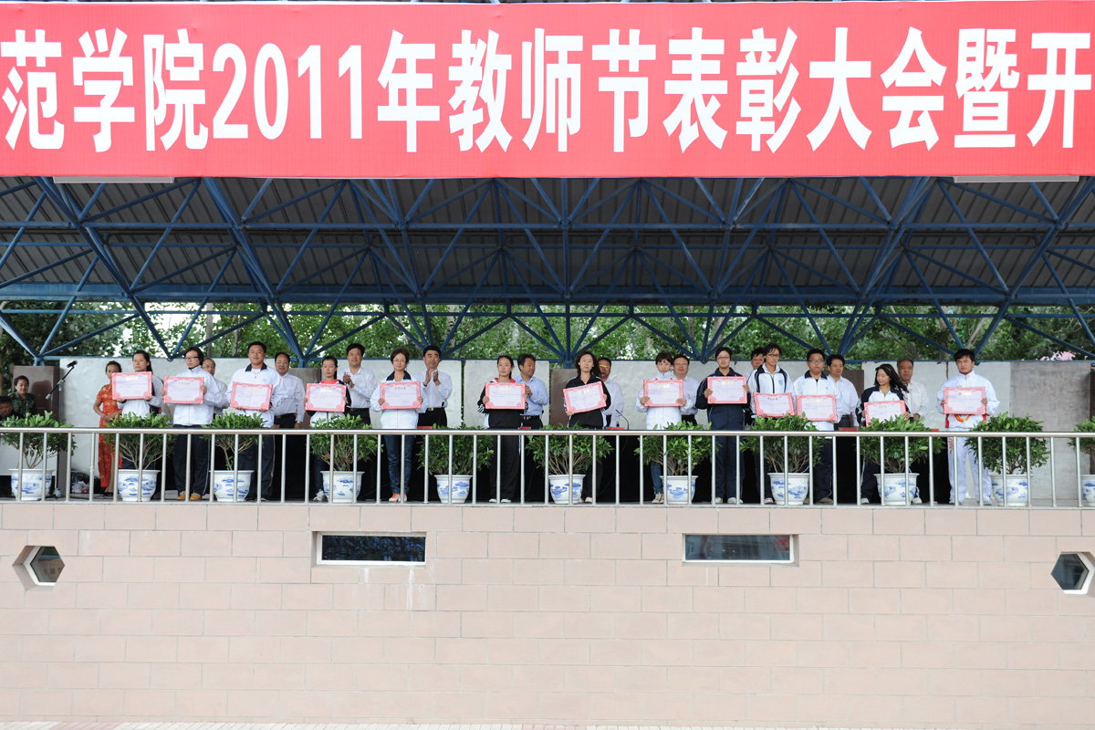 在悠扬的进行曲中,学校领导向受表彰的省级教学名师、校级教学名师、校先进单位、校先进工作者代表、奖学金获得者、三好学生、优秀学生干部、先进班集体代表颁发了奖牌和证书。
