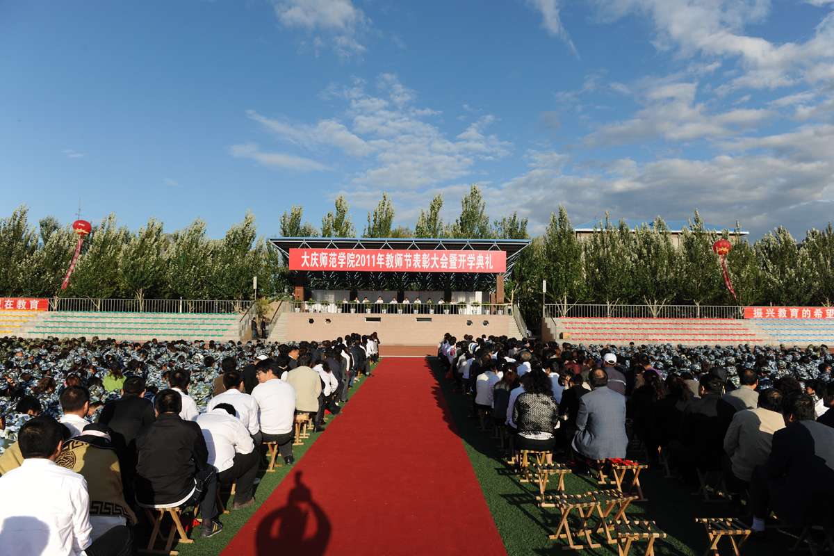 爱岗敬业育英才,无私奉献写春秋。9月9日下午,在第27个教师节来临之际,我校在体育场隆重举行庆祝教师节表彰大会暨新生开学典礼。校长徐克明、副校长吕晓波、刘恒等校领导出席大会,全校万余名师生欢聚一堂,隆重庆祝。