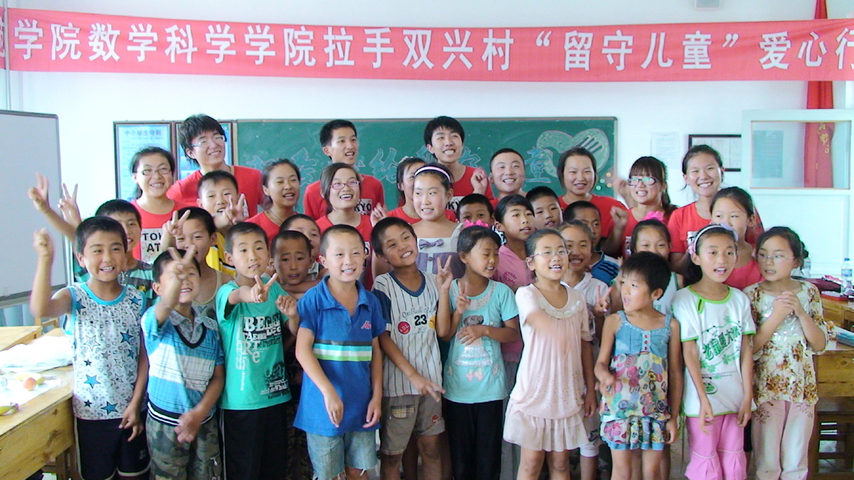 为贯彻胡锦涛总书记“向实践学习、向人民群众学习”讲话精神,数学科学学院一行18人赴安达市太平庄镇双兴村,开展以“心手相牵、服务社会、关心祖国未来、关注留守儿童”为主题的暑期社会实践活动。
