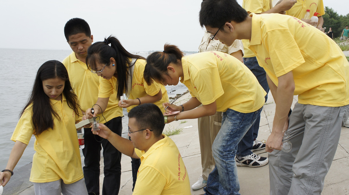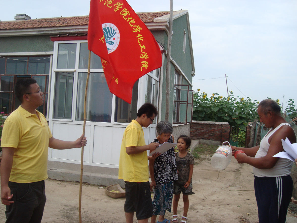 社会实践服务团队一行15人来到了大庆最大的水源地、杜尔伯特蒙古族自治县龙虎湖进行水质检测。同学们在不同水域采集了水样,并做了初步的检测和处理,主要测量了水样的pH值,对水样进行了初步的过滤,观察水样中的悬浮物,并把水样及数据带回学校做进一步的检测和分析。同时,同学们利用风景区人流量比较大,各年龄、阶层的群体齐全的优势,分组、分区的开展了大面积的调查问卷,并向游客宣传环保知识。随后,社会实践服务团成员来到了杜尔伯特一心乡付家围子屯对当地农民开展调查,了解农村的环境状况以及农民群众的环保意识。在整个调查活动中,所有的问卷都被带回学校做数据统计与分析,并根据数据的结果提出科学、切实可行的环保建议。