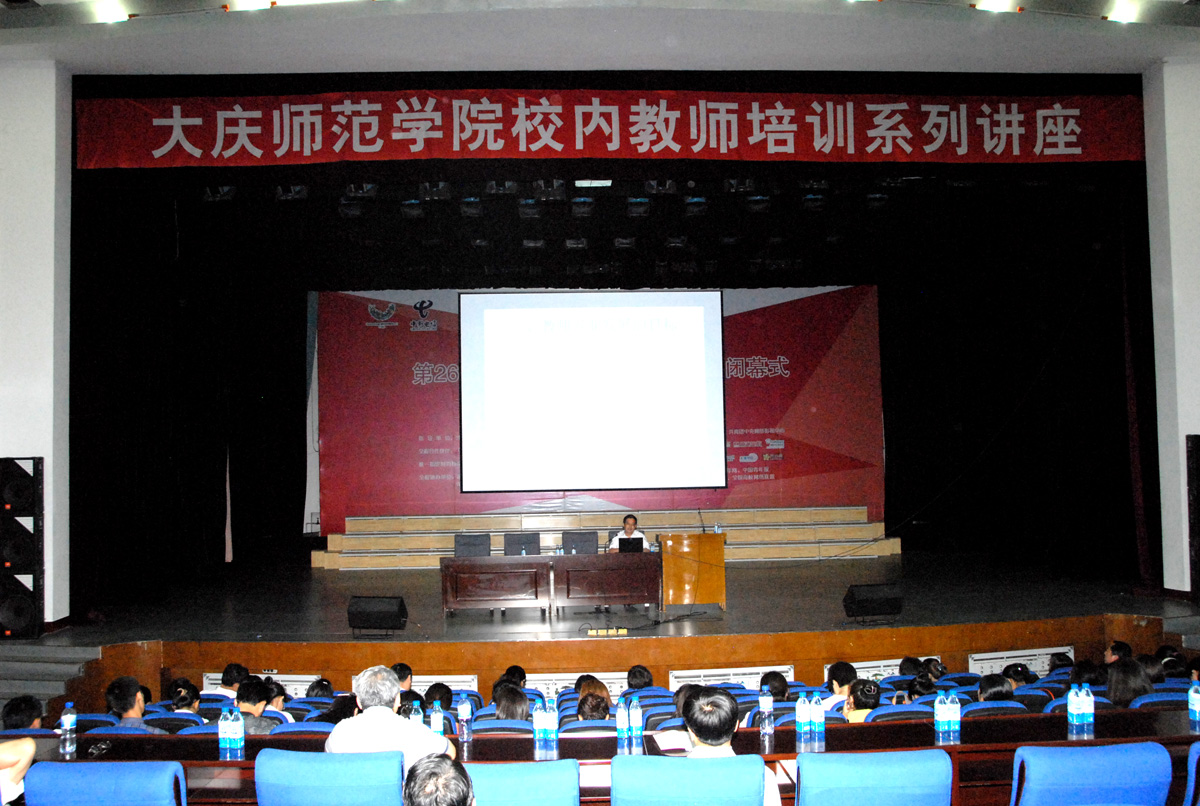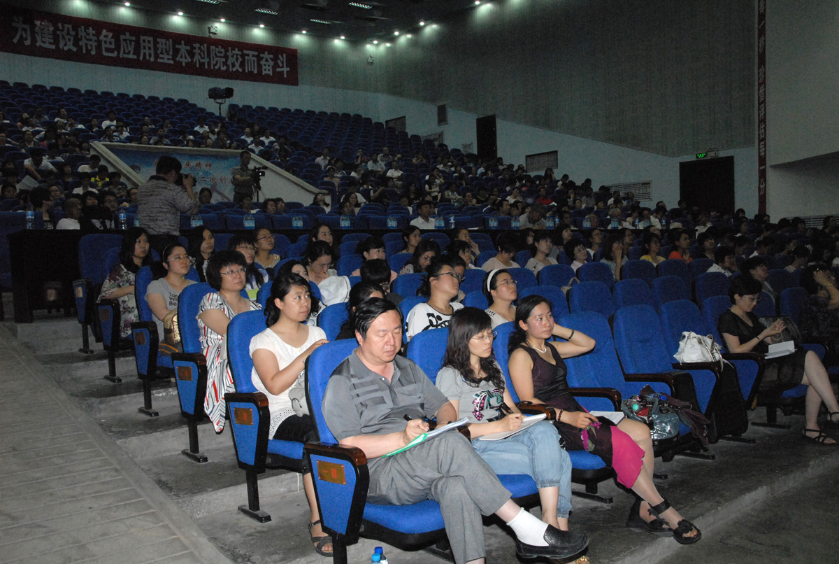 根据我校2011年校内教师培训工作安排,6月25日,特邀请临沂大学教务处副处长赵勇、山东省教学名师李同胜教授、访美学者董耘副教授来我校作教师培训系列讲座。副校长杨锐锋、教务处、教学评价中心、校级督导、各院(部)领导以及全体教师聆听了报告,报告会由校长助理、教务处处长乔志和主持。