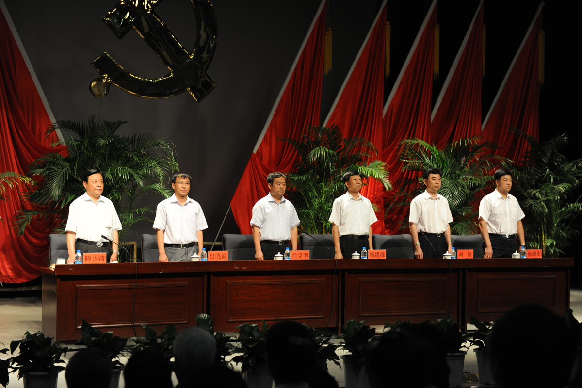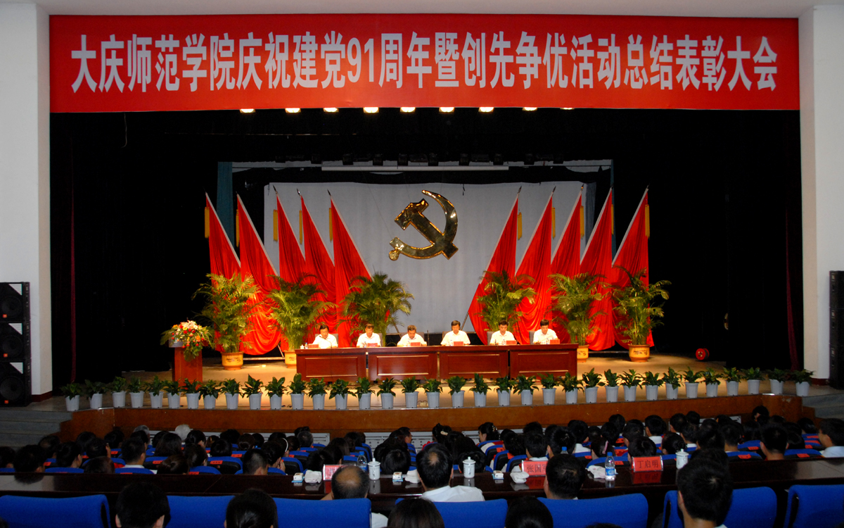 6月28日下午,我校在大学生活动中心隆重召开庆祝建党90周年暨创先争优总结表彰大会。校长徐克明,党委委员杨锐锋、吕晓波、刘恒、陈少清、徐晓东及学校共产党员、入党积极分子代表近千人欢聚一堂,共同庆祝中国共产党九十一华诞。