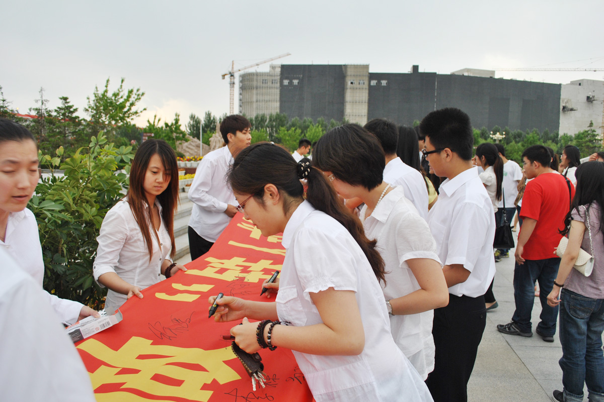 最后,全体毕业生代表在写有“做‘铁人式’社会主义建设者和接班人”的条幅上郑重签下自己的名字,庄严承诺,以“铁人式”优秀毕业生张丽莉同学为榜样,为早日成材、报效祖国而努力。