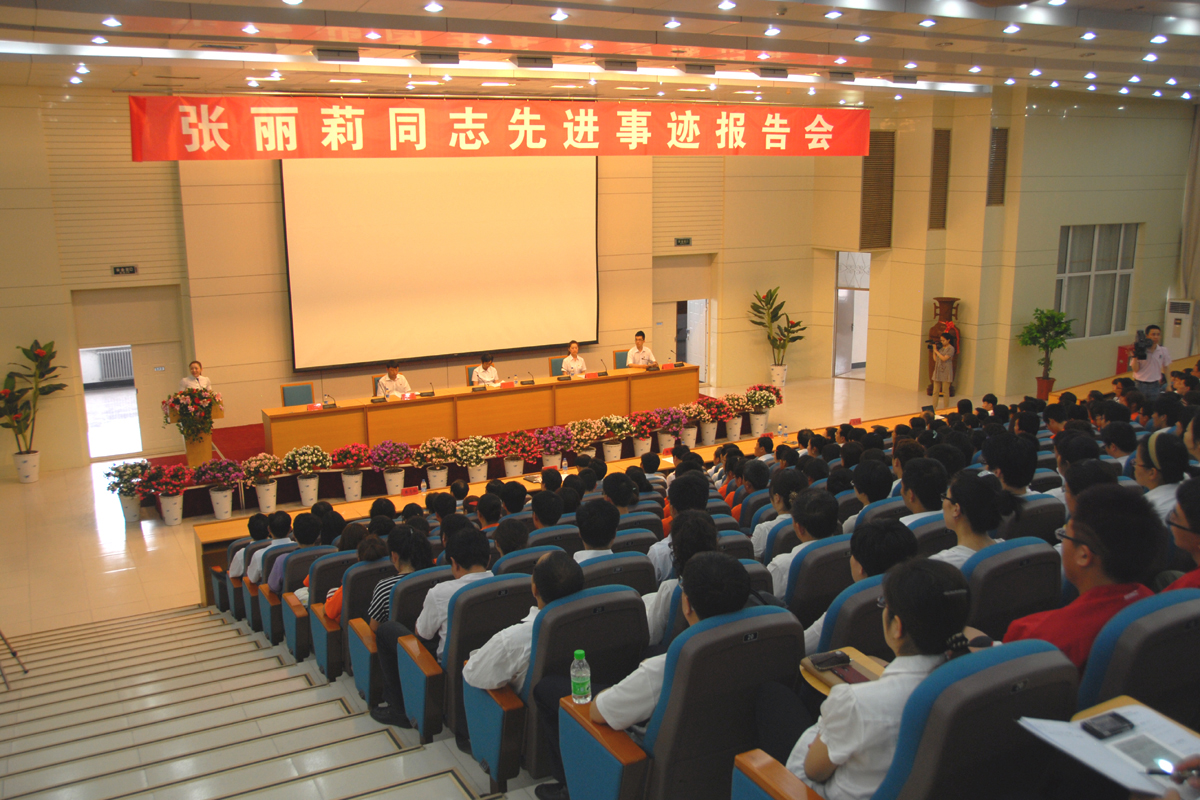 为进一步弘扬丽莉老师的崇高精神,激励广大师生员工以更昂扬的斗志、饱满的热情投身到学习、工作中去,我校组建了张丽莉事迹报告团,并于6月6日在百湖大讲堂进行了首场报告。学校副总师以上领导、各院(部)党政领导、机关各部门负责人及师生代表近800人聆听了报告会。
