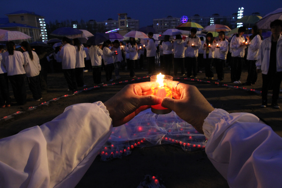 “张丽莉老师的英雄壮举可钦可佩,充分展现了一位人民教师的崇高灵魂和大爱精神。”夜幕下,在主楼前广场,3000多名来自各院系的同学们手捧蜡烛,围绕在“心形”蜡烛图组周围,气氛庄严而肃穆。“或许我们素不相识,是你的感人事迹深深打动了我们的心!你的勇敢,就像初夏的阳光,让我们充满了对最美教师的憧憬与向往。”伴随文学院学生代表的发言祈福活动正式开始。