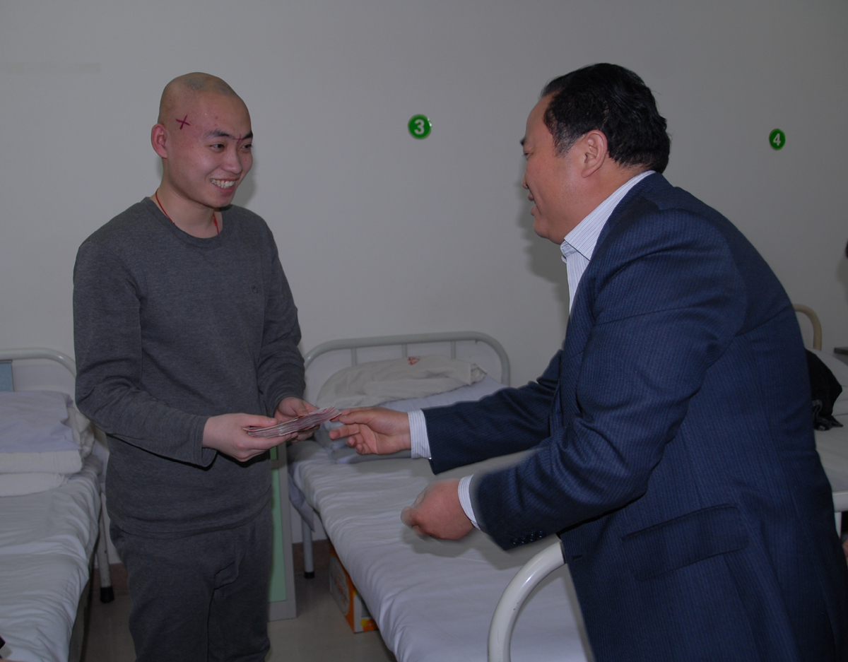 民进企业家支部主任王首宽、民进师范学院支部副主任王勇分别将所属支部会员们的爱心捐款共计1.2万元人民币交给索成德同学的手上,并叮嘱他要安心养病,积极配合医院的治疗,同时调理好心情,争取早日战胜病魔康复出院。接过善款的一刹那,索成德同学眼含热泪,他表示一定会好好治疗,用自己的实际行动回馈社会,回报所有帮助过他的人。