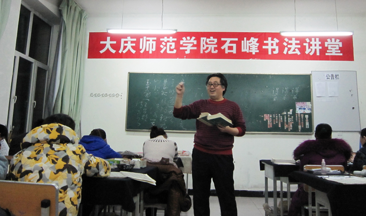 “石峰书法讲堂”依托“石峰印社”这一我省著名书法篆刻团体的学术资源,采取义务授课的形式,讲授书法文献学、书法史论、书法批评、铭刻学、古文字学理论课程以及篆、隶、楷、行、草等书体技法。