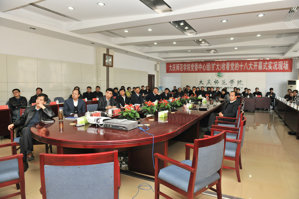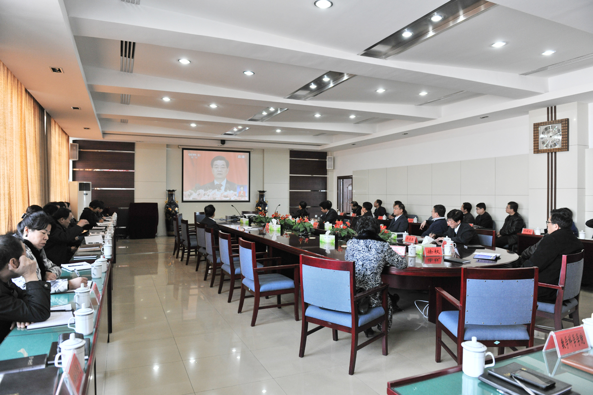 11月8日,学校党委在主楼七楼会议室召开中心组(扩大)会议,集中收看中国共产党第十八次全国代表大会开幕盛况。学校副总师以上领导,机关、教辅、各院(部)领导60余人共同收看了大会实况直播。