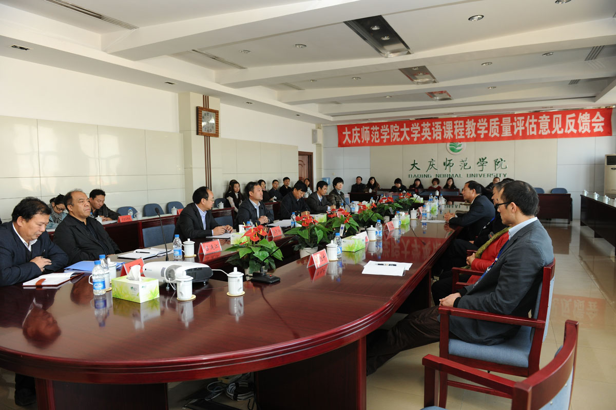 10月24日上午,专家组全体成员在我校主楼七楼会议室召开评估汇报会,校长徐克明,副校长乔志和,教务处、外国语学院以及大学外语教学部教师出席了汇报会。