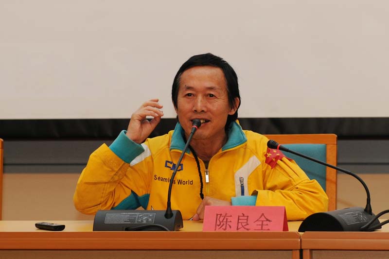 在主持人简短的介绍后,陈良全先生开始向大家讲述他在周游列国中所遇到的人文趣事和历险经历,以及沿途如何传播中国文化,呼唤世界和平。他寄语我校学生要怀揣梦想,刻苦学习,为实现自己的梦想努力拼搏。