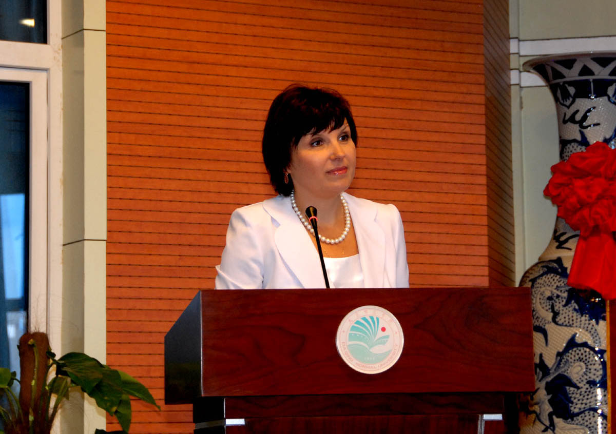 俄罗斯布拉戈维申斯克国立师范大学巴库洛娃·特·符副教授,俄罗斯远东联邦大学卡利尼琴科·奥丽加·维亚切斯拉沃夫娜副教授,帕夫林科·加琳娜·弗拉基米罗芙娜副教授,东北师范大学博士生导师张向葵教授,以及我校校长徐克明,副校长杨锐锋、乔志和等国内外专家学者参加了此次学术研讨会。