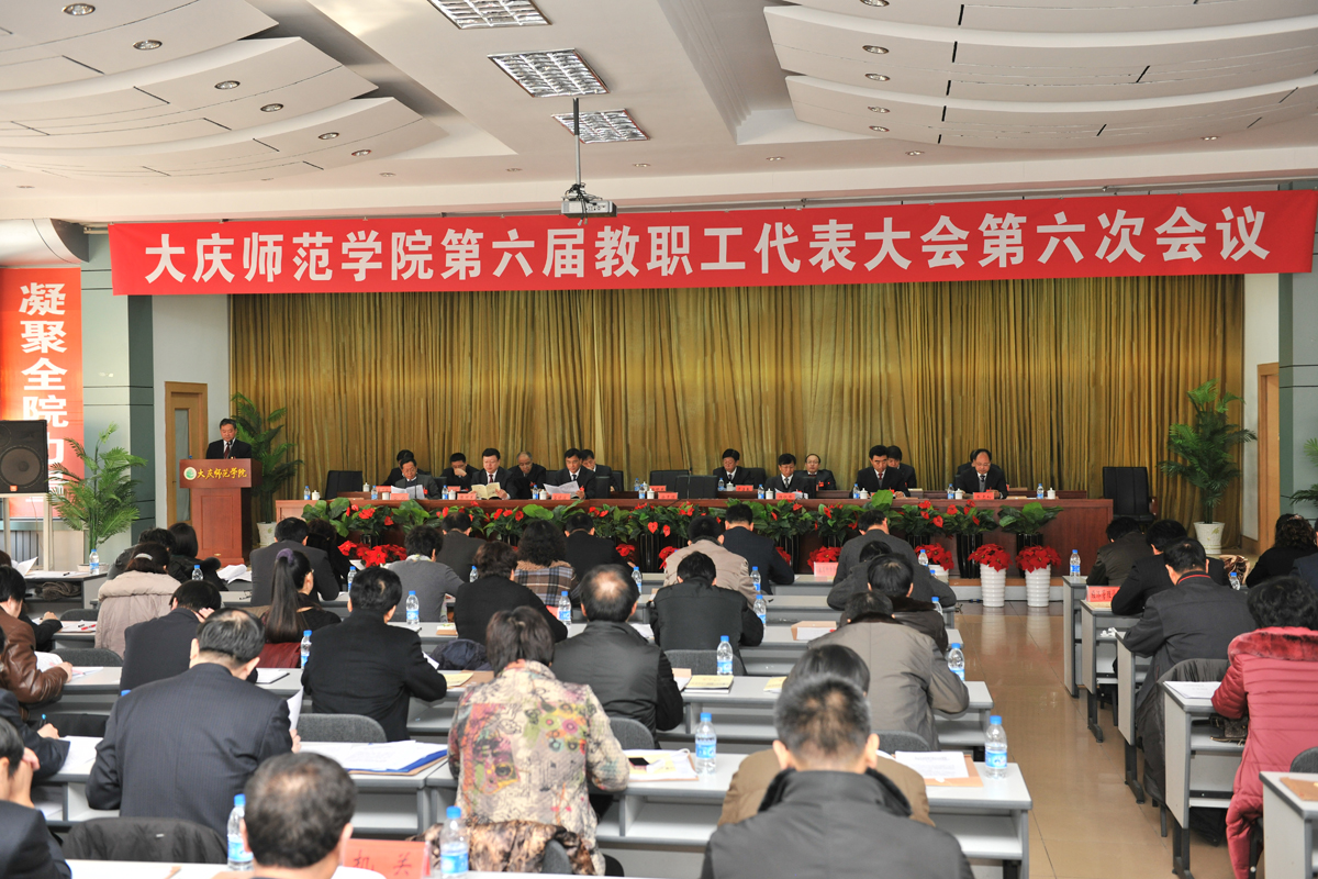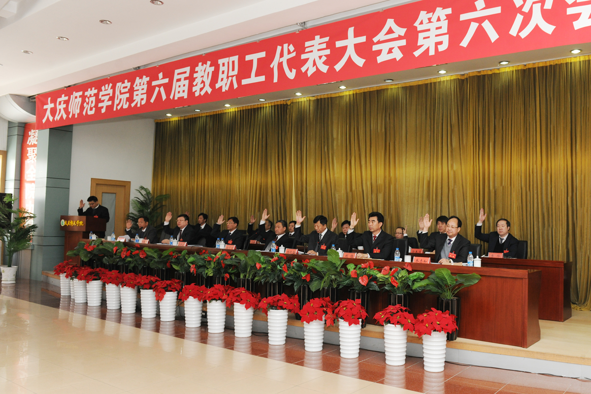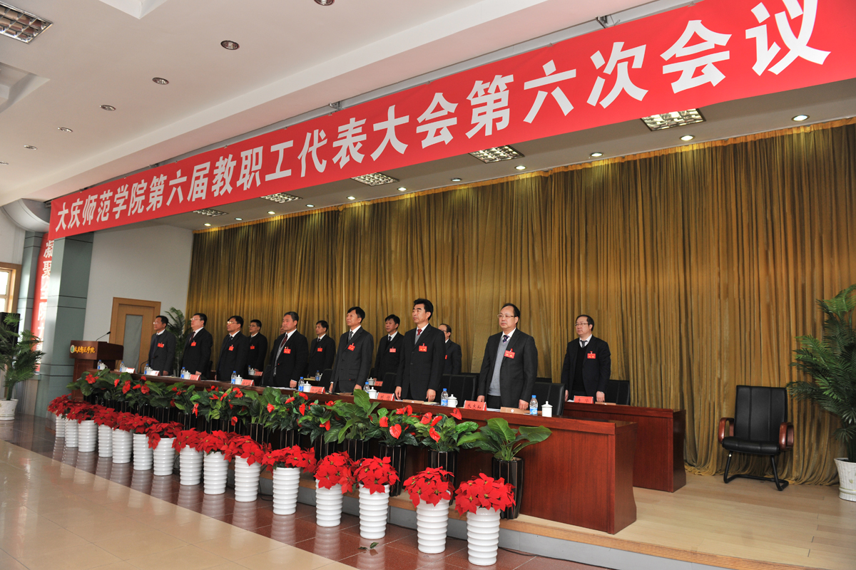 在全国人民深入学习贯彻党的十八大和全国“两会”精神的新形势下,我校第六届教职工代表大会第六次会议于3月22日在铁人讲堂隆重召开。校长徐克明、副校长杨锐锋,吕晓波,党委副书记刘恒、副校长张国军、乔志和,工会主席谷为等主席团成员在主席台就坐。