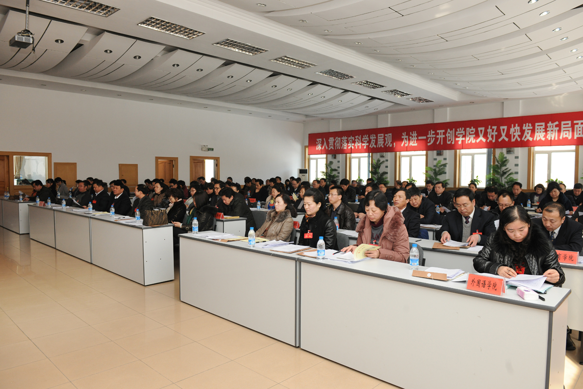 大会在雄壮的国歌声中开幕。校工会主席谷为主持预备会、主席团第一次会议及第一次全体会议。开幕式上,校长徐克明同志作了题为“深入学习贯彻党的十八大精神 坚持内涵发展 提高办学质量 全面推进特色应用型本科院校建设”的学校工作报告。报告全面回顾了我校2012年的主要工作和取得的成就,分析了学校在发展过程中存在的主要问题,指出了2013年学校各项工作的总体要求和主要指标。就2013年学校重点工作,他提出了8方面具体要求:一是坚持内涵发展,夯实办学基础;二是深化教学改革,提高培养质量;三是优化师资结构,提高队伍素质;四是加强科学研究,提升科研实力;五是做大校外培训,提高培训质量;六是坚持立德树人,创新学生工作;七是深化体制改革,推进管理创新;八是强化政治保证,建设和谐校园。