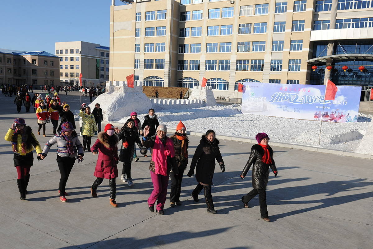 2015年1月7日,随着发令枪响,我校健康永远在路上“冬天的浪漫”——挑战两小时·10公里徒步行全民健身活动火热开启。