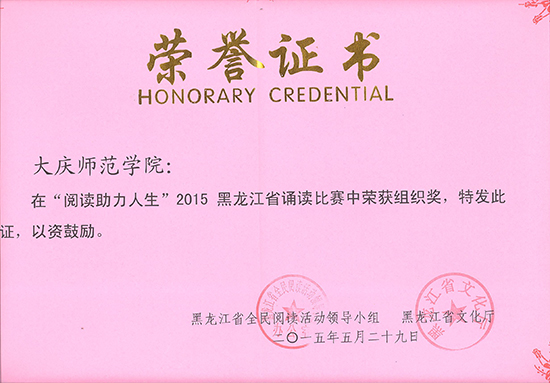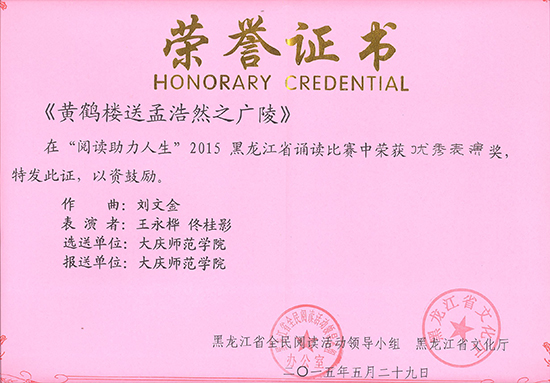 应黑龙江省全民阅读活动领导小组办公室邀请,我校音乐与舞蹈学院声乐教师王永桦、古筝教师佟桂影参加了由黑龙江省委宣传部、黑龙江省文化厅、黑龙江省新闻出版广电局主办,黑龙江省图书馆承办的全省“阅读助力人生”2015黑龙江省诵读比赛决赛颁奖演出。