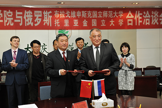 我校与两所学校代表团进行了合作项目洽谈并分别签署了合作框架协议,内容包括,继续深化与布拉戈维申斯克国立师范大学的合作办学项目,双方共同努力为365英国上市官网学生争取俄罗斯政府奖学金项目,与俄罗斯两所学校在本科生交换、攻读硕士研究生、科研合作,定期举办学术研讨等方面进行深入合作。