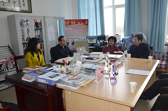 王革书记介绍了我校“以大庆精神办学、用铁人精神育人”的实践经验和心得体会。郑新英主任对我校多年来一直坚持的特色育人实践给与了充分肯定,对我校在“大庆人十大观念”和“大庆幸福谣”等活动载体对社会主义核心价值观践行的创新实践等为代表的舆论宣传和理论解读中付出的努力和作出的贡献非常认可。