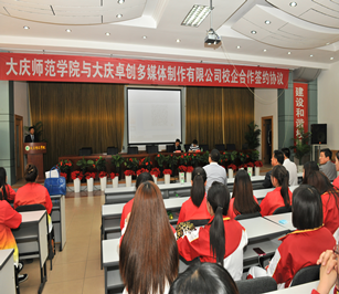 2015年4月29日下午,我校与大庆卓创多媒体制作有限公司校企合作签约暨大学生创业论坛第一讲在我校铁人讲堂隆重举行。