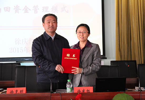 4月22日下午,我校在铁人讲堂举行兼职教授聘任仪式,聘任大庆油田有限责任公司财务部徐庆红副主任为我校兼职教授,校长徐克明教授为徐庆红副主任颁发兼职教授聘书。