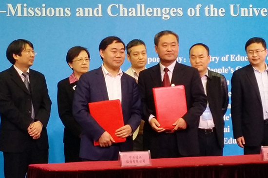 2015年4月16日,在驻马店召开的由教育部支持的第二届产教融合发展国际论坛上,教育部-中兴通讯ICT(信息通讯技术)产教融合创新基地项目(一期)签约仪式成功举行。教育部副部长鲁昕、教育部发展规划司副司长陈峰、中兴通讯高级副总裁陈健洲等领导参加签约仪式。我校作为首批入围共建ICT产教融合创新基地的合作院校,徐克明校长代表学校在合作协议上签字。