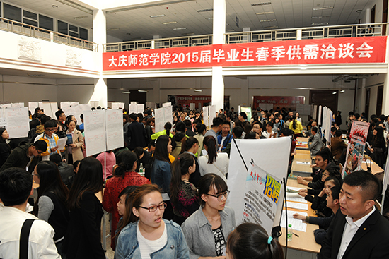 4月15日下午,我校2015届毕业生春季供需洽谈会在图书馆举行。学校党委副书记王革、主管副校长张国军亲临现场指导工作,了解单位招聘需求和学生就业情况。招生就业处全体、各学院就业负责人都来到招聘会,积极推荐学生就业。