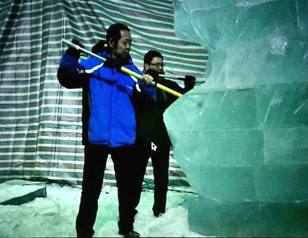 应北京2022年冬季奥林匹克运动会申办委员会的邀请,美术与设计学院教师李方海带领2名毕业生于2015年元月4日赴北京延庆龙庆峡风景区参加“北京申办2022年冬奥会冰雕作品展”。