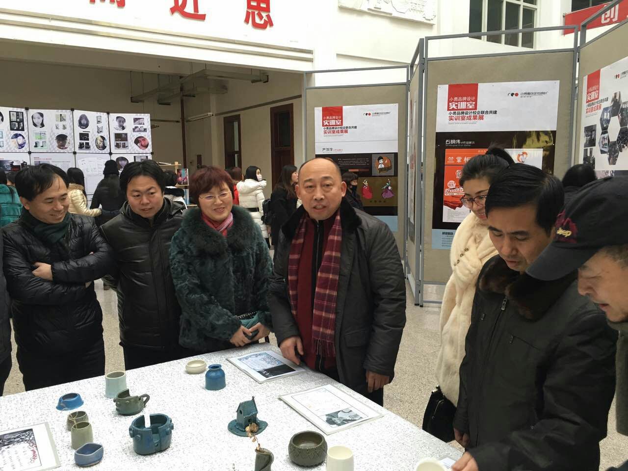 12月28日,美术与设计学院在学校图书馆举办“企业实训室和教师工作室2015年实践训练过程及成果汇报展”,共展出15个企业实训室和教师工作室的100多名学生课外实训作品和过程图版。校长徐克明、副校长乔志和以及教务处领导分别到展览现场参观和指导。
