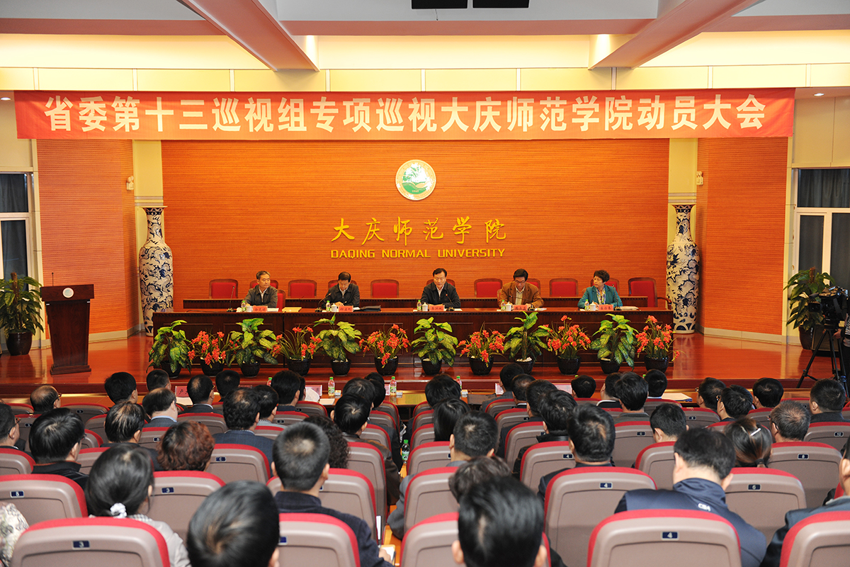 10月9日上午,专项巡视动员大会在我校图书馆博雅讲堂召开。省委巡视工作领导小组成员、省委巡视办主任李洪斌,省委第十三专项巡视组组长樊占盛、副组长崔治春,巡视组成员刘红菊、史振涛、乔增正、张智勇、吕平、张文龙、李俊峰出席大会,学校领导班子成员、中层干部、正高职人员以及学科带头人参加大会。会议由校党委书记钟启刚主持。
