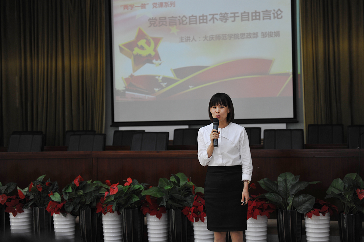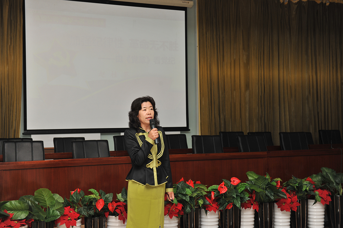 油田党委党课巡讲团成员、我校思想政治理论课教研部赵桂英、王彦玲、马吉芬、邹俊娟4位教师,分别对《加强纪律性 革命无不胜——从党章看党纪》、《四个服从》、《<准则><条例>微解读》、《党员言论自由不等于自由言论》四个专题进行讲解。党课内容贴近党员需求、事例生动具体、语言简练深刻,具有较强的针对性,两个小时的学习使党员干部对党内法规有了更直观、更深刻的认识。