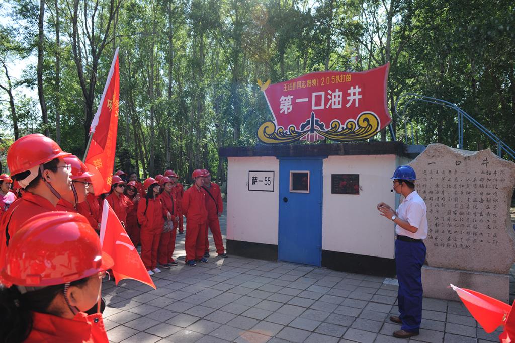学员们在铁人第一口井、铁人王进喜纪念馆、石油科技馆、城市规划展示馆、采油一厂三矿中四采油队和中十六联合站等教学点听取了基地教师的精彩讲解,并参观了教育基地。在草原之上听取了“民族脊梁在饥寒中决战,职工家属五把铁锹闹革命”的精彩讲解,并亲身体验了“挖野菜会战”拓展活动,感受老一辈创业者的艰辛。