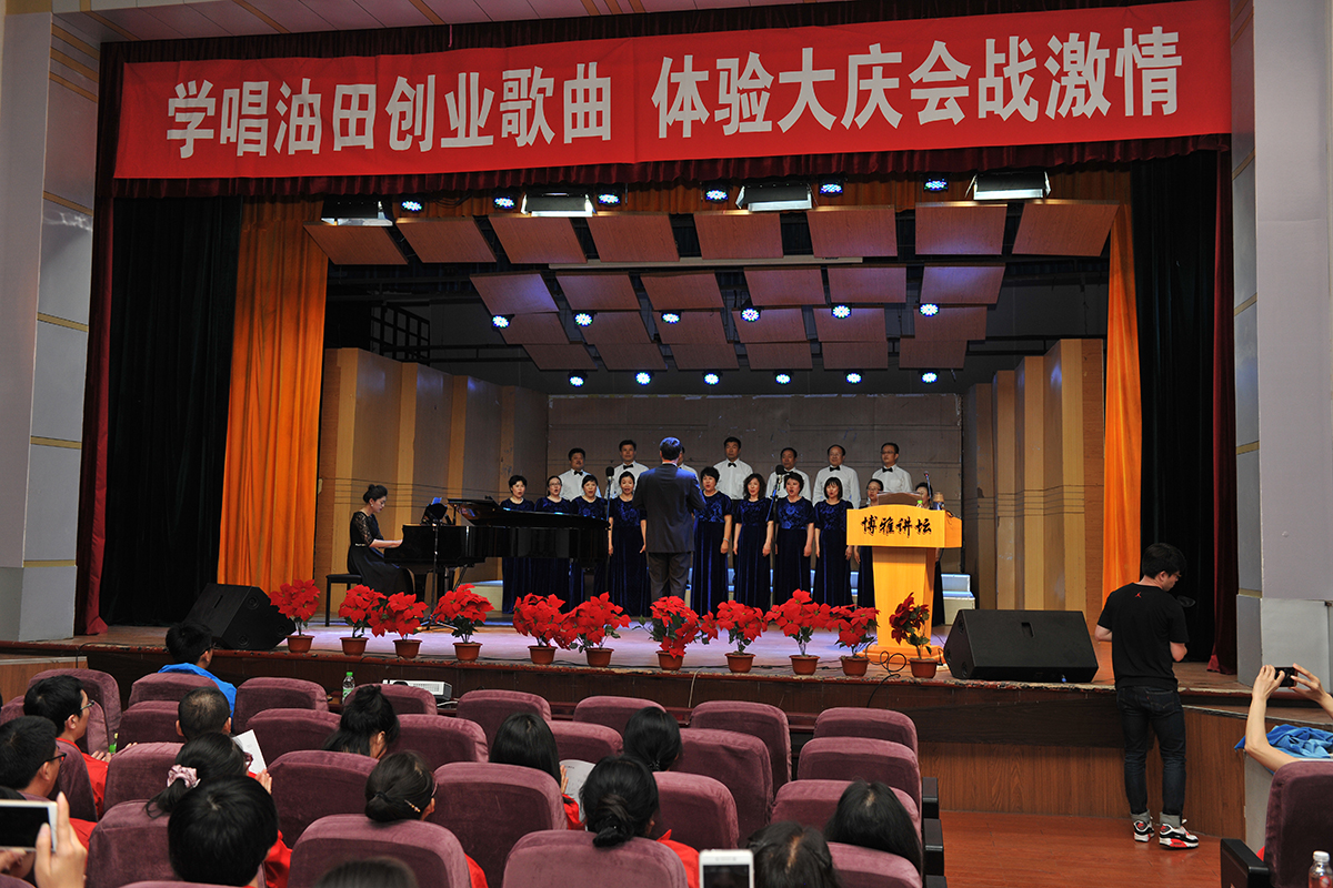 在激情教学环节,学员们研修了创业不同时期大庆精神在音乐作品中的反映,学唱石油歌曲,师生互动精彩纷呈。