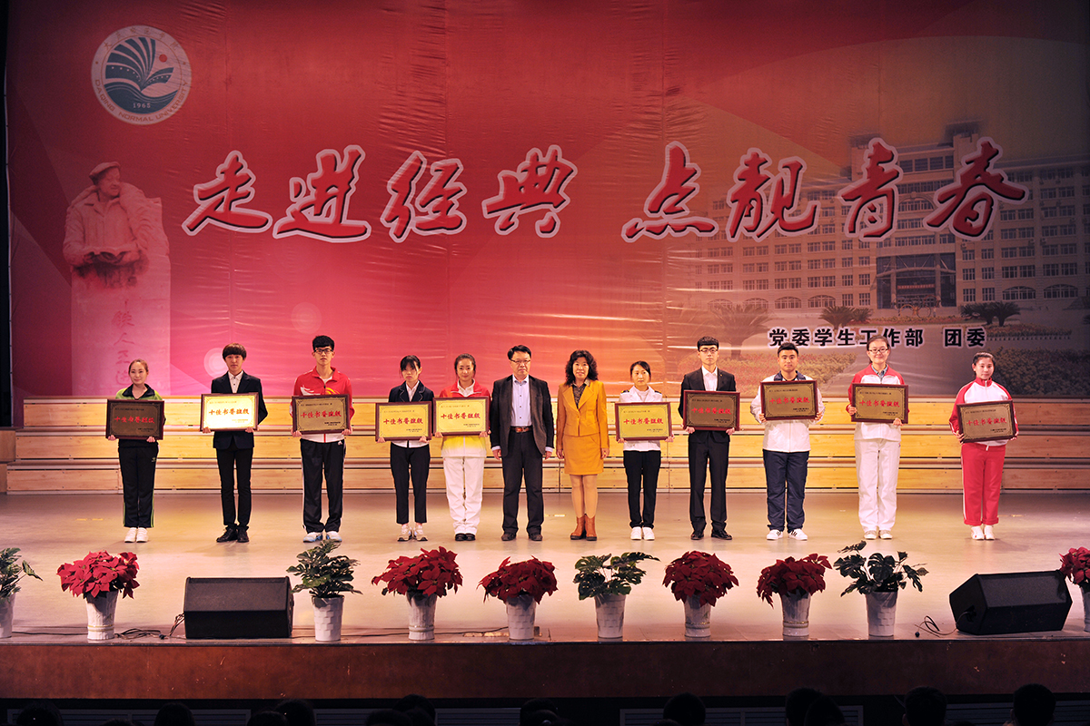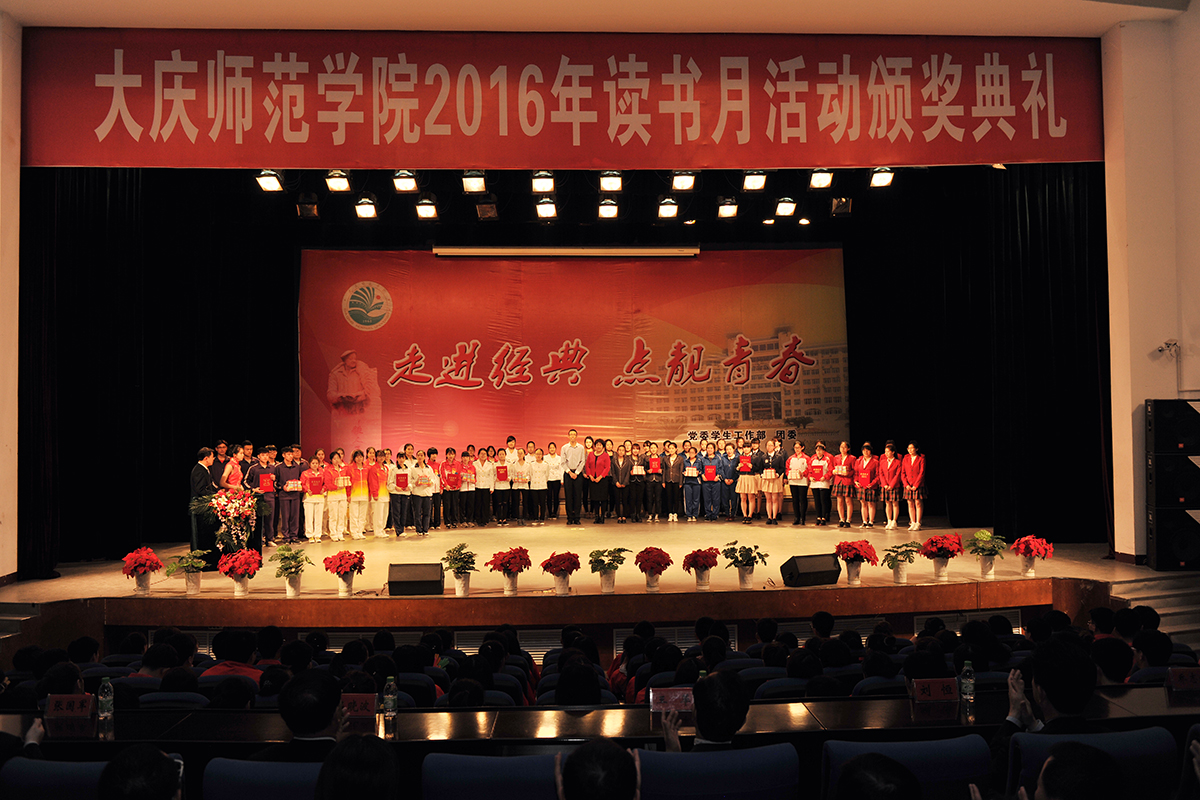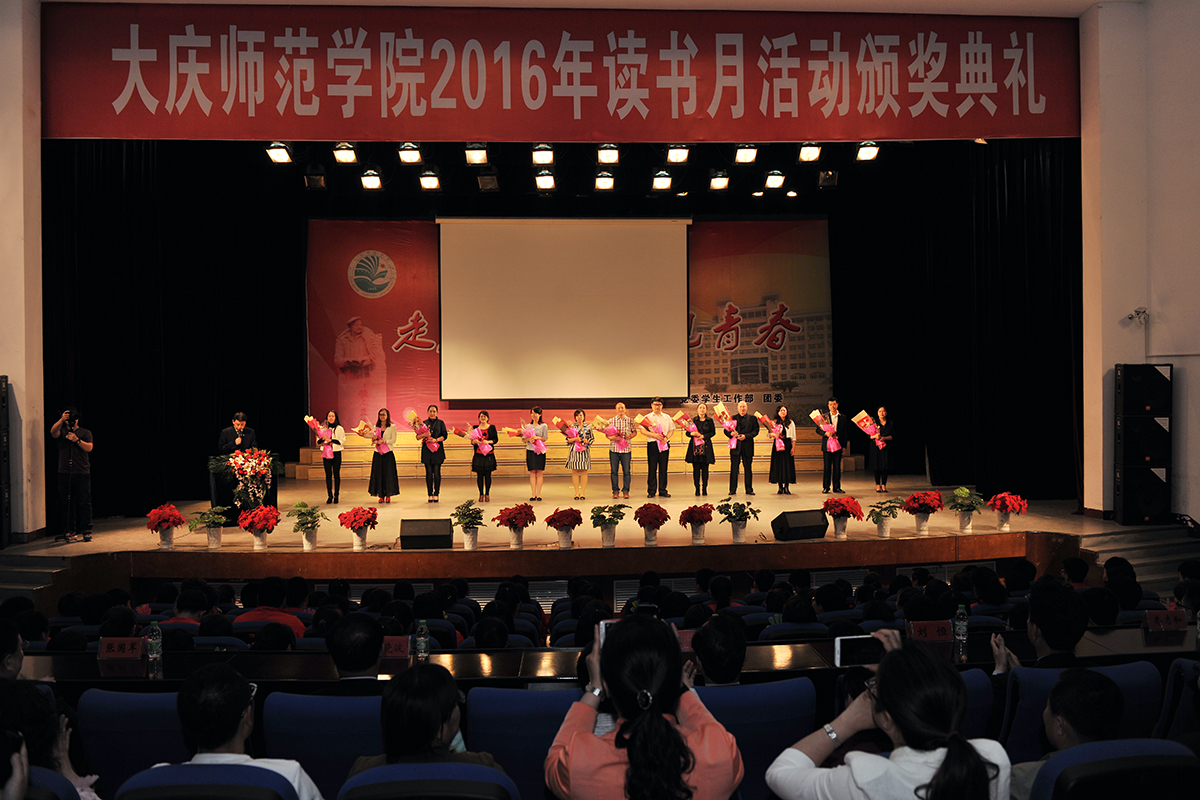颁奖典礼上,阅读经典导师和学生为读书月活动中荣获“十佳读书之星”、“十佳书香寝室”、“十佳书香班级”、“最佳组织奖”和“我最喜爱的老师”等奖项的获奖单位和个人颁奖。