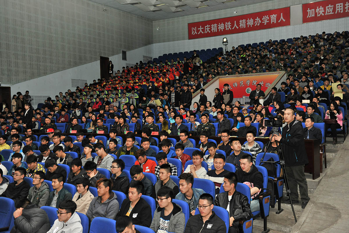 3月30日下午2时,大学生征兵政策宣讲会在我校大学生活动中心隆重举行。大庆军分区参谋长谢海波大校,校党委副书记刘恒,让胡路区委常委、常务副区长王彦杰,让胡路区区委常委、人武部政委唐吉龙上校以及各二级学院党总支书记、学生支部书记、辅导员、班主任、学生近千人聆听了政策宣讲会。