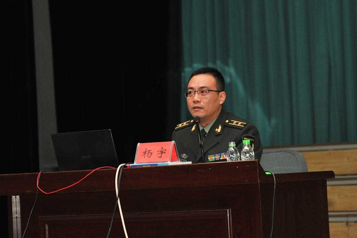 省军区学生军训教研室副主任杨宇中校受省教育厅、省军区委托,从“大学生为什么要当兵”、“大学生当兵有什么优惠政策”、“大学生当兵需要什么条件和程序”三个方面为我校师生进行了详细的讲解。杨主任结合自身二十一年的军旅生涯,讲解生动而详实,使同学们了解了军营生活,极大的鼓舞了我校学生入伍参军热情。