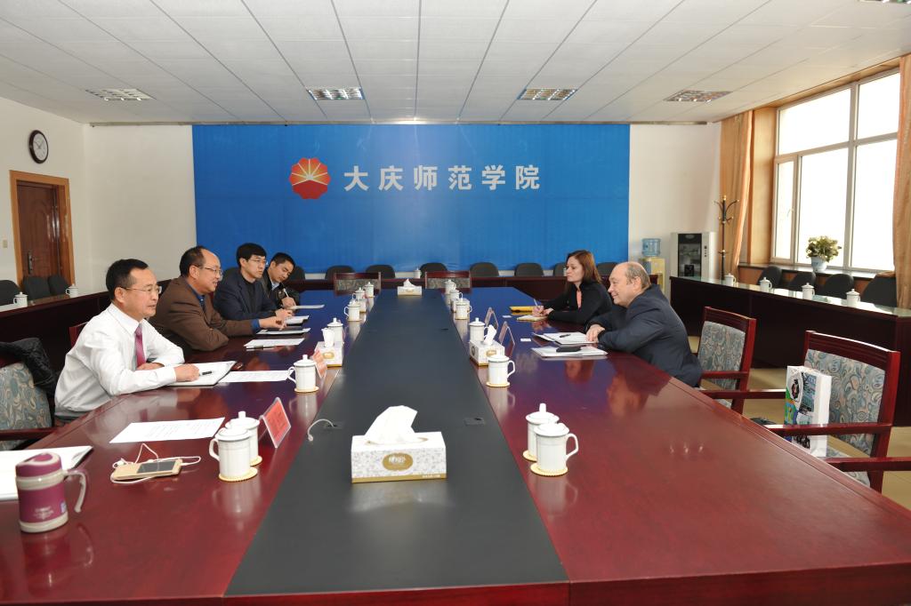 乔志和副校长代表学校对阿穆尔国立人文师范大学代表团的来访表示热烈欢迎,科什金副校长对我校的热情接待表示了衷心感谢。