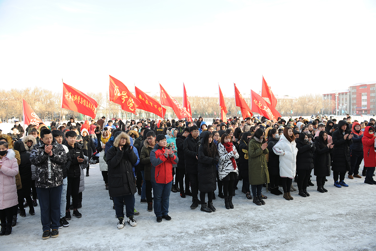 在黑龙江省首个“全民冰雪活动日”来临之际,12月21日,我校学生冰上运动会在学校中心冰场举行。学校党委副书记刘恒、副校长乔志和、体育学院领导以及全校三百余名速滑运动员参加了开幕式。