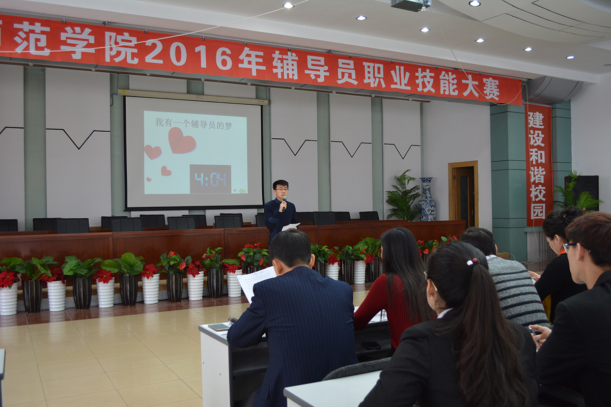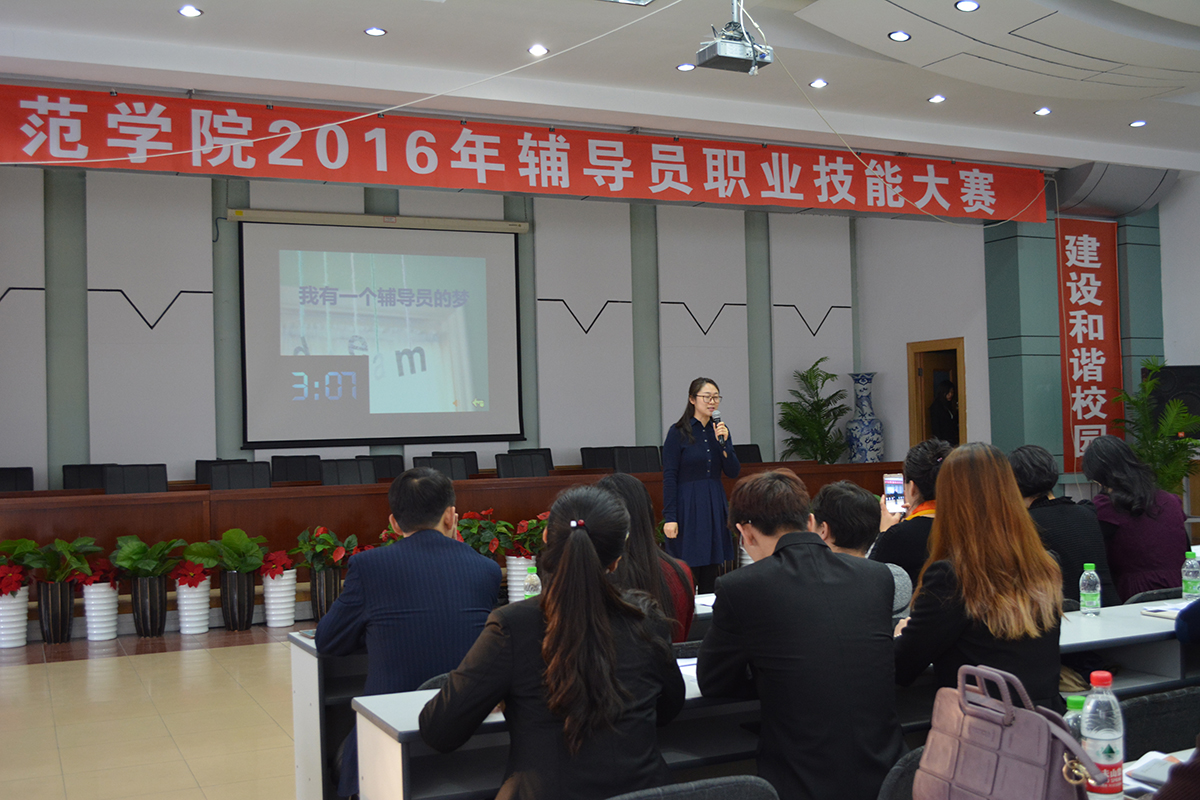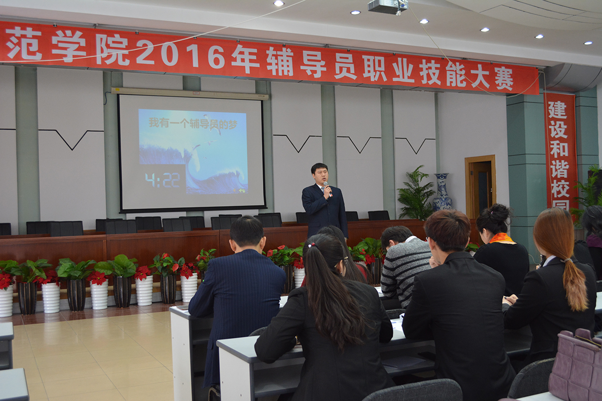 12月21日上午,365英国上市官网2016年辅导员职业技能大赛在铁人讲堂如期举行。共有8名辅导员参加了此次大赛的决赛。全体学生工作人员观摩了整场比赛。
